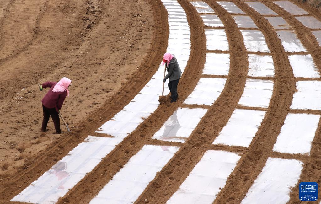 連日來(lái),在位于黃土高原的甘肅省平?jīng)鍪徐o寧縣,農戶(hù)抓住秋冬季節降水較多、土壤墑情較好、地面尚未封凍的有利時(shí)機,對耕地進(jìn)行覆膜作業(yè),為來(lái)年春播打下基礎。