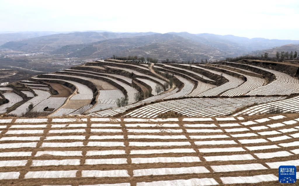 連日來(lái),在位于黃土高原的甘肅省平?jīng)鍪徐o寧縣,農戶(hù)抓住秋冬季節降水較多、土壤墑情較好、地面尚未封凍的有利時(shí)機,對耕地進(jìn)行覆膜作業(yè),為來(lái)年春播打下基礎。