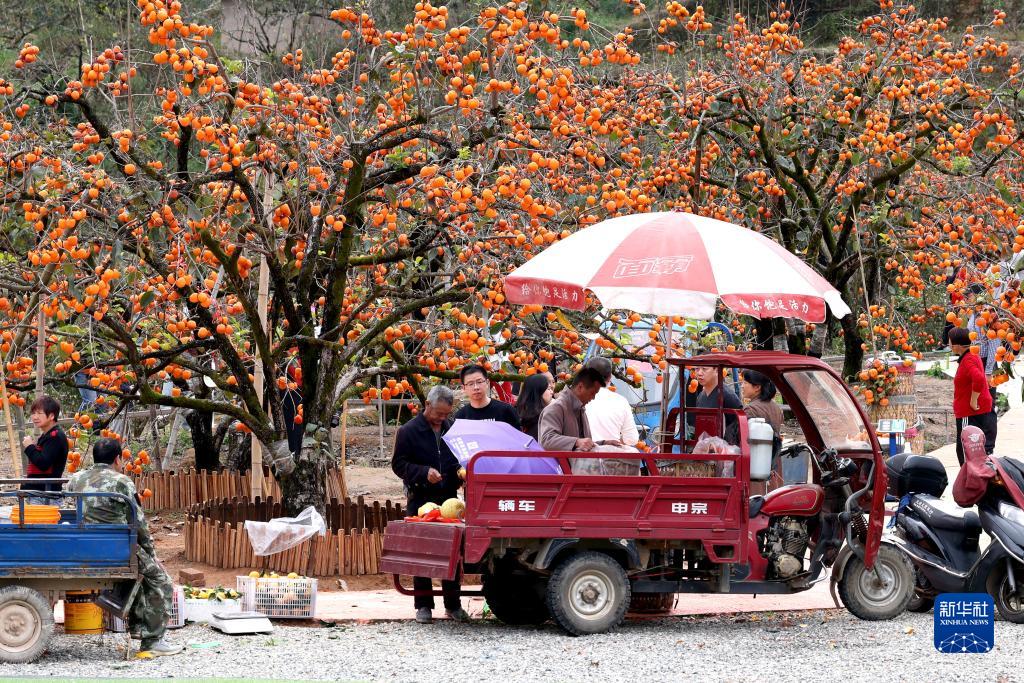 11月12日,游客在寧德市古田縣利洋村柿子園購買(mǎi)柿子。
