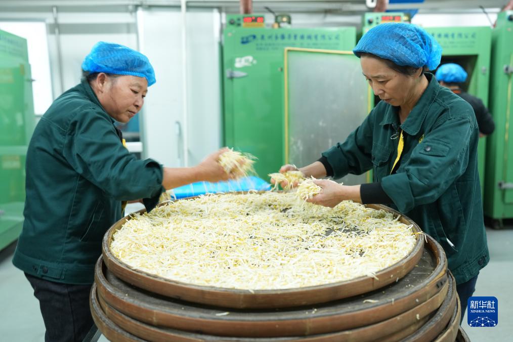11月13日,在金華市婺城區浙江金佛手生物醫藥科技有限公司,工作人員在烘佛手絲,制成茶飲原料。