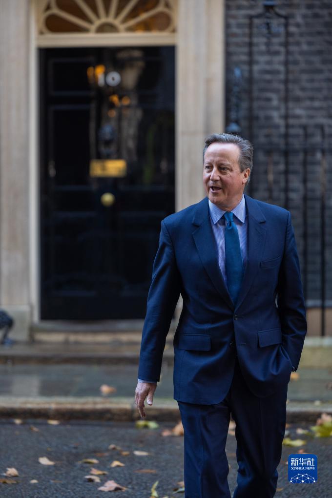 11月13日,在英國倫敦,新任外交大臣戴維·卡梅倫走出唐寧街10號首相府。