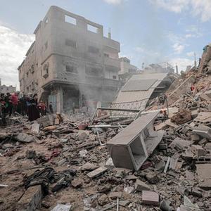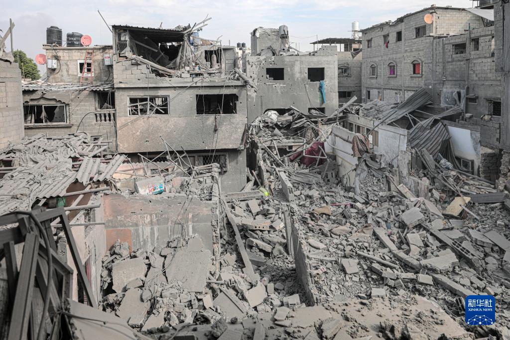 這是11月13日在加沙地帶中部地區拍攝的一個(gè)遭以色列空襲的建筑廢墟。