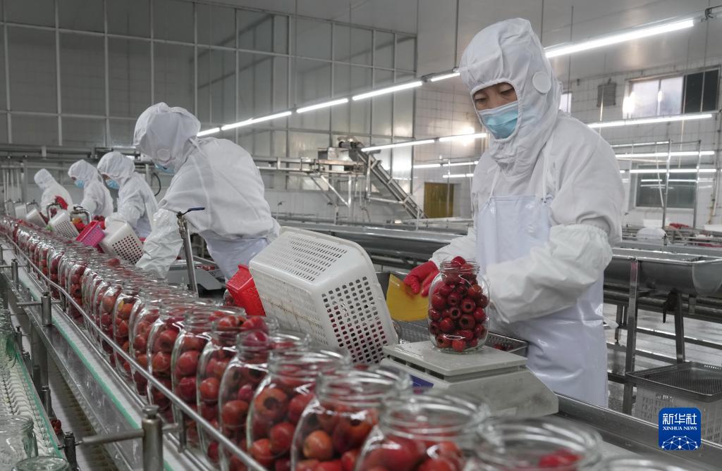 11月14日,工人在河北省遵化市一家食品企業(yè)的山楂罐頭生產(chǎn)車(chē)間工作。