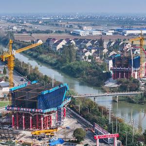 當日,滬渝蓉高鐵泰州段通泰揚特大橋跨如泰運河及X355縣道連續梁拱全面開(kāi)建。據介紹,該項目由中鐵十一局施工、全長(cháng)約345米,跨越既有通航運河和通行縣道,是滬渝蓉高鐵泰州段內最大跨度的連續梁拱。