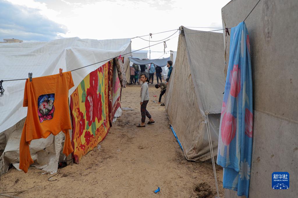 這是11月15日在加沙地帶南部城市汗尤尼斯一處臨時(shí)營(yíng)地拍攝的巴勒斯坦兒童。