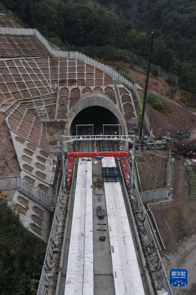 11月16日無(wú)人機拍攝的杭衢鐵路(建衢段)天池山隧道進(jìn)口,隧道無(wú)砟軌道澆筑已完成。