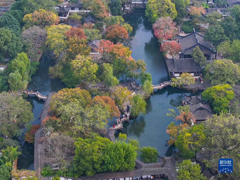 初冬時(shí)節,江蘇蘇州拙政園內色彩斑斕,景色如畫(huà),吸引眾多游客前來(lái)參觀(guān)游覽。