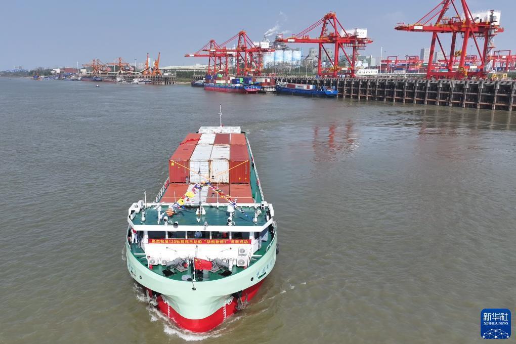 當日,漢江首艘純電動(dòng)集裝箱示范船“華航新能1”在湖北武漢首航,由此開(kāi)啟漢江航運的電化時(shí)代。