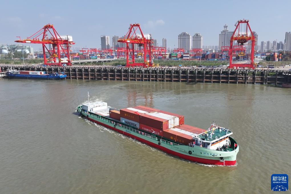 當日,漢江首艘純電動(dòng)集裝箱示范船“華航新能1”在湖北武漢首航,由此開(kāi)啟漢江航運的電化時(shí)代。