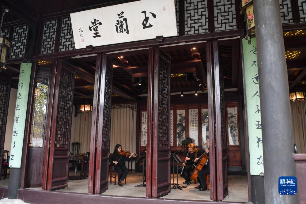 11月16日,費城交響樂(lè )團的演奏家們在蘇州拙政園玉蘭堂內演奏。