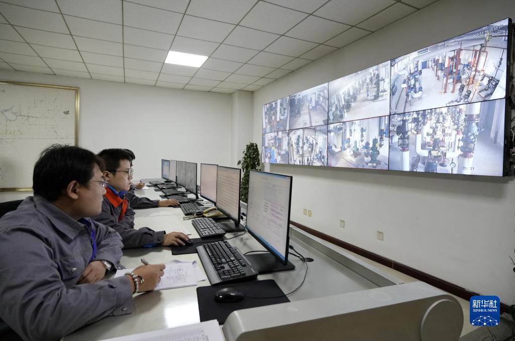11月16日,唐山市豐潤區國能熱力供熱運行調度中心的工作人員在監測供熱系統運行情況。