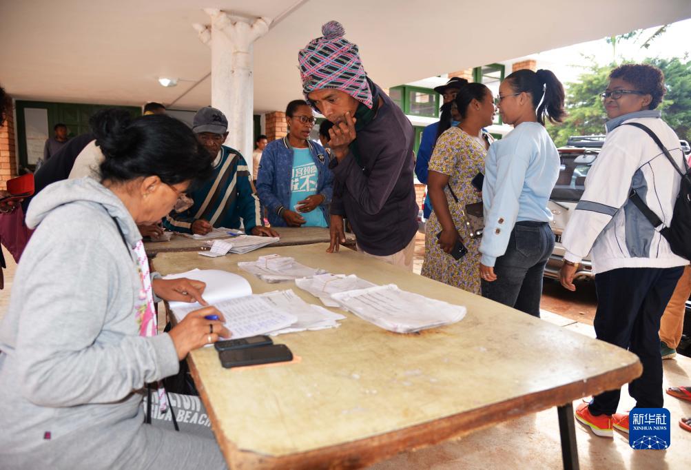 11月16日,在馬達加斯加首都塔那那利佛,民眾在投票站進(jìn)行投票。