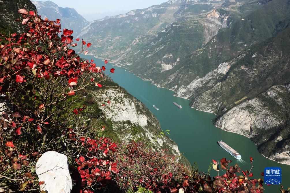 近期,長(cháng)江三峽兩岸紅葉如火似霞,美不勝收。