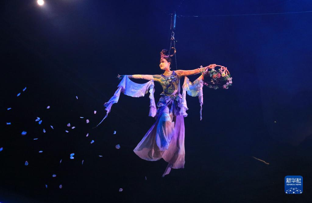 11月16日晚,演員在大型洞窟式沉浸體驗劇《樂(lè )動(dòng)敦煌》中表演。