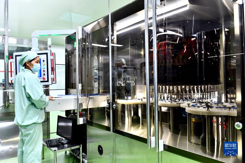 7月7日,在菏澤了未元生物醫藥大健康產(chǎn)業(yè)園,工作人員在抗生素生產(chǎn)線(xiàn)值守。