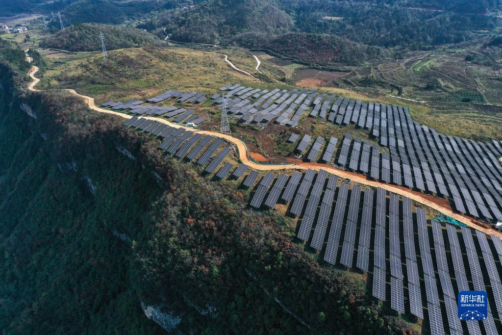 這是11月16日拍攝的貴州省石阡縣頂董坡風(fēng)電光伏項目(無(wú)人機照片)。