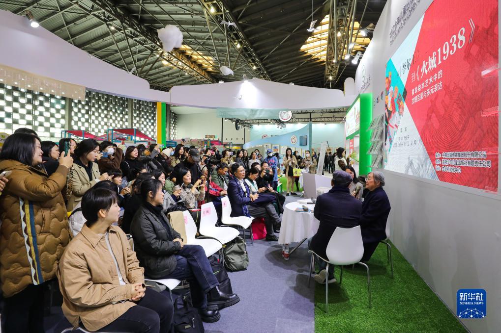 11月17日,藝術(shù)家蔡皋(右一)在第十屆中國上海國際童書(shū)展現場(chǎng)與書(shū)迷交流。