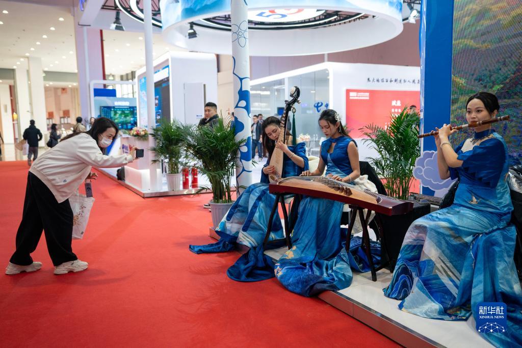 11月17日,演奏人員在2023中國國際旅游交易會(huì )上表演中國傳統樂(lè )器。