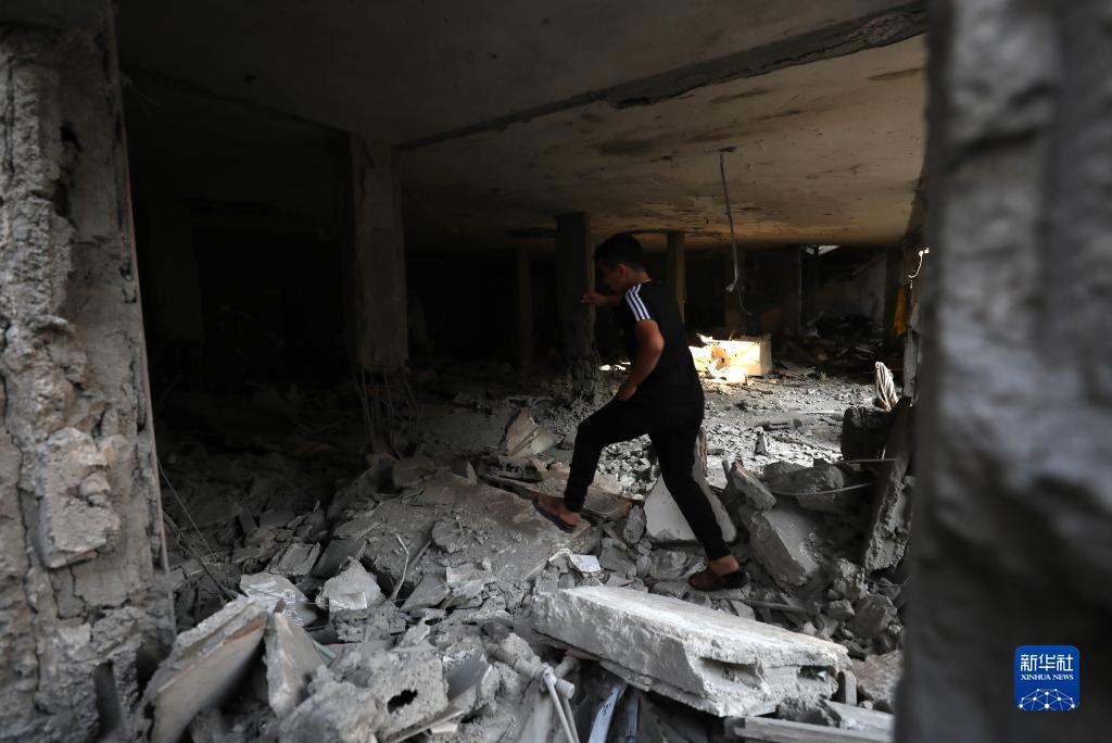 11月18日,在約旦河西岸城市納布盧斯的巴拉塔難民營(yíng),巴勒斯坦人查看沖突后的受損建筑。