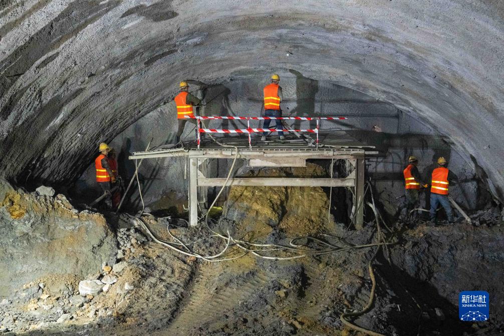 11月19日,中鐵五局施工人員在桑龍高速金家坡二號隧道內施工。
