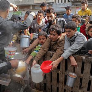 加沙地帶:民眾領(lǐng)取救濟食物