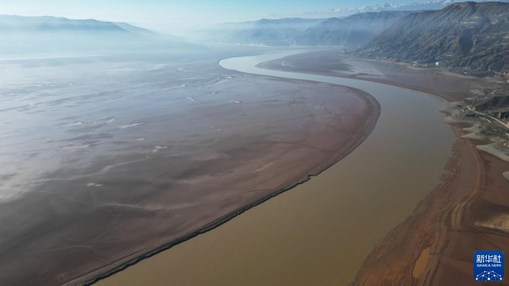 11月20日拍攝的大片河灘裸露的甘肅劉家峽水庫(無(wú)人機照片)。