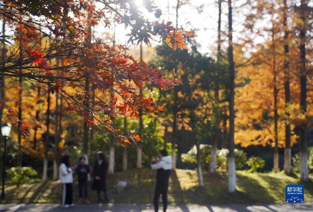 初冬時(shí)節,在位于江西省南昌市的梅嶺國家森林公園,紅色的水杉、黃色的銀杏、綠色的松柏等相互交錯,構成一幅美麗的冬日畫(huà)卷,吸引不少游客前來(lái)觀(guān)賞。