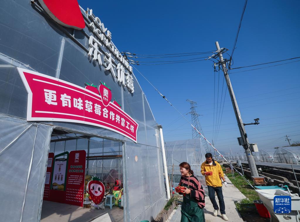 在浙江省建德市更樓街道“更有味”草莓共富合作工坊大棚內,“頭茬”早熟草莓搶鮮上市。莓農們忙著(zhù)采收新鮮草莓,通過(guò)快遞發(fā)往杭州、上海等多地市場(chǎng)。