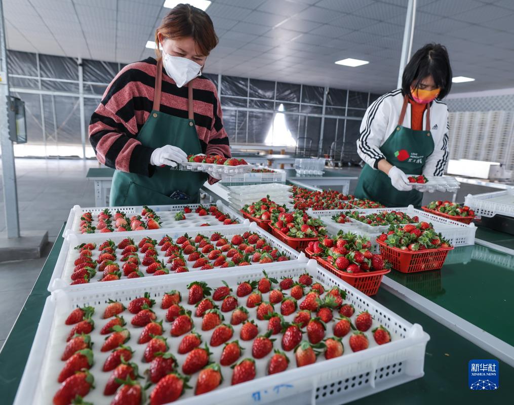 11月21日,草莓共富合作工坊的工作人員打包剛剛采摘的草莓。