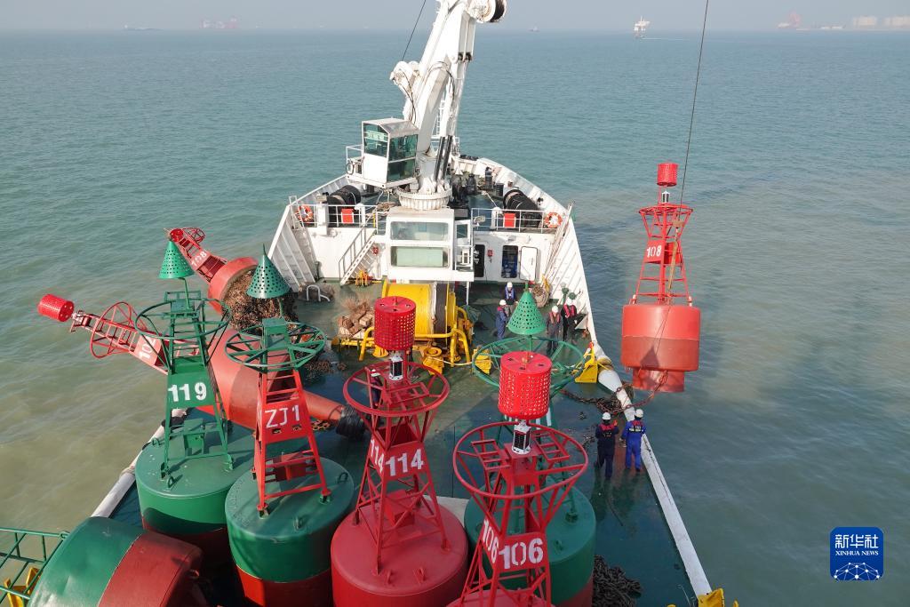 當日,我國冬季海冰冰情較為嚴重的山東省萊州灣海域冬季換標作業(yè)開(kāi)始,交通運輸部北海航海保障中心煙臺航標處派出航標船,對龍口、萊州、濰坊3個(gè)港口海域的79座航標進(jìn)行更新,確保冰期和大風(fēng)寒潮天氣海上各類(lèi)導航助航標志持續發(fā)揮效能,保障通航環(huán)境安全有序。