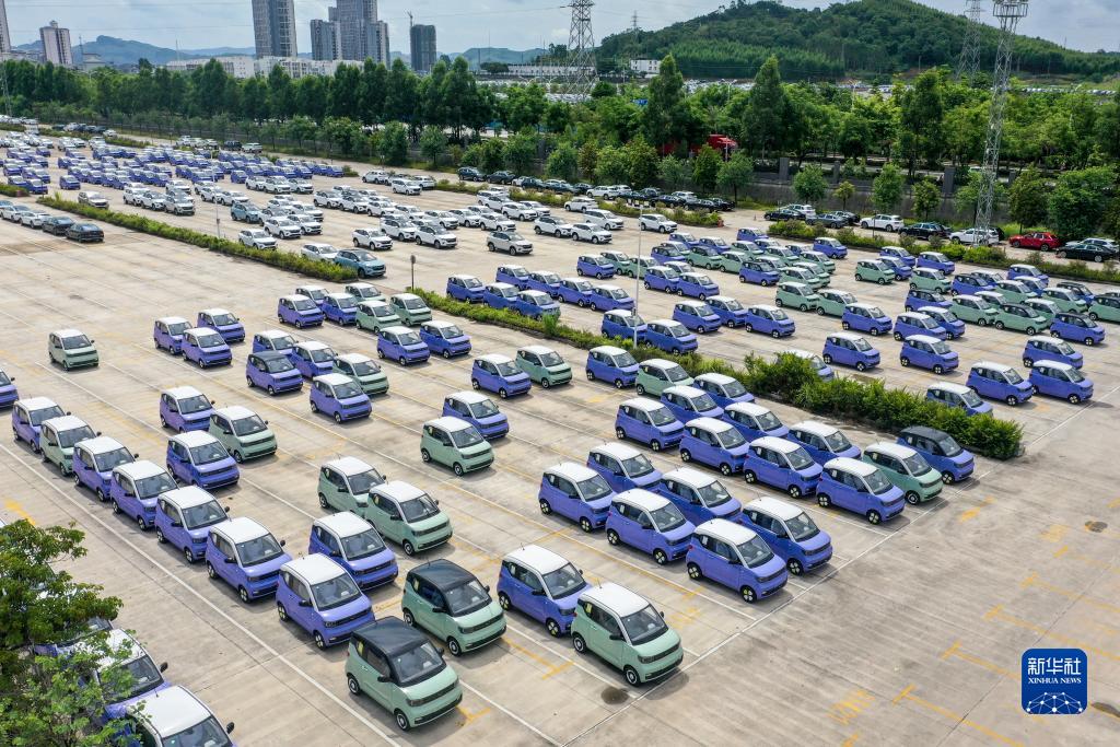 這是位于廣西柳州市的雒容汽車(chē)物流基地,一些出口的新能源汽車(chē)從這里裝車(chē)運往各大出海港口(7月19日攝,無(wú)人機照片)。新華社記者 曹祎銘 攝