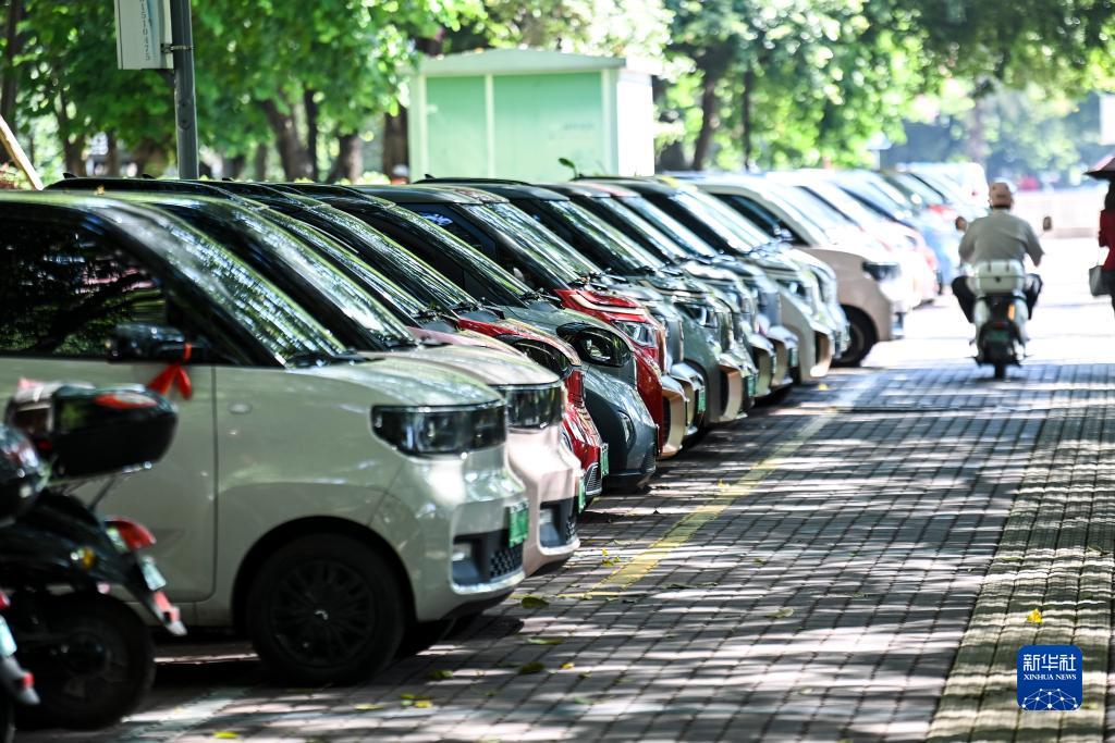 這是在廣西柳州市街頭拍攝的一處新能源汽車(chē)專(zhuān)用停車(chē)區(10月16日攝)。新華社記者 曹祎銘 攝