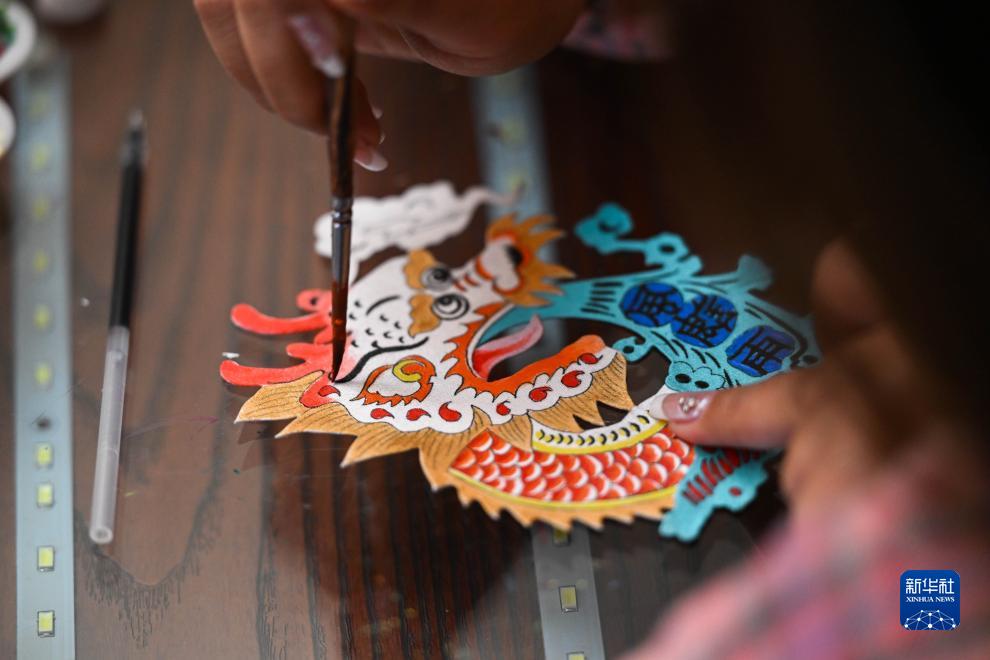11月16日,在內蒙古阿拉善盟阿拉善左旗的馬鬃繞線(xiàn)蒙古族唐卡傳習所,一名學(xué)徒在制作蒙古族唐卡。