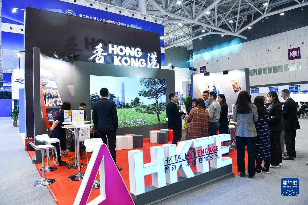 11月22日拍攝的第二屆全國人力資源服務(wù)業(yè)發(fā)展大會(huì )香港展臺。