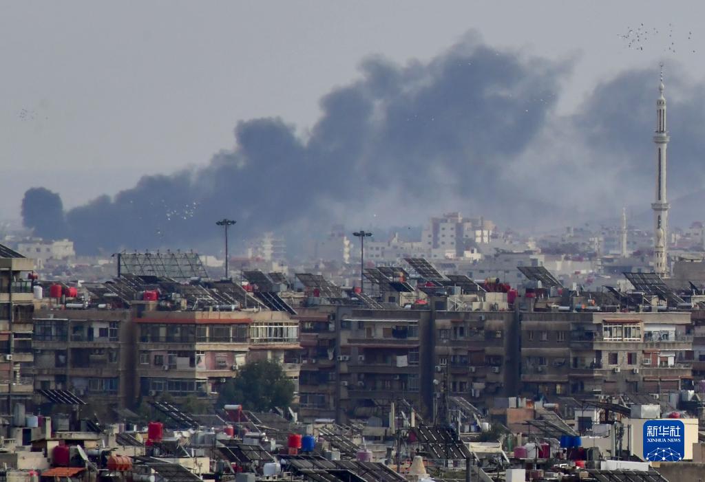 11月22日,敘利亞大馬士革附近遭以軍襲擊后冒起濃煙。