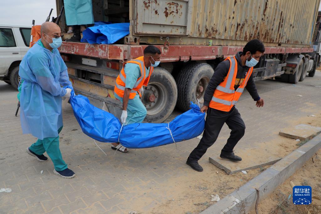 11月22日,人們在加沙地帶南部城市汗尤尼斯埋葬巴以沖突遇難者。