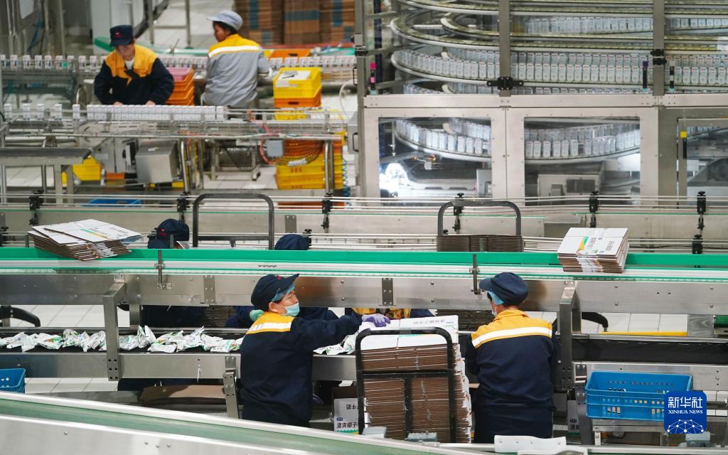 工作人員在威縣君樂(lè )寶乳業(yè)有限公司包裝車(chē)間工作(11月22日攝)。