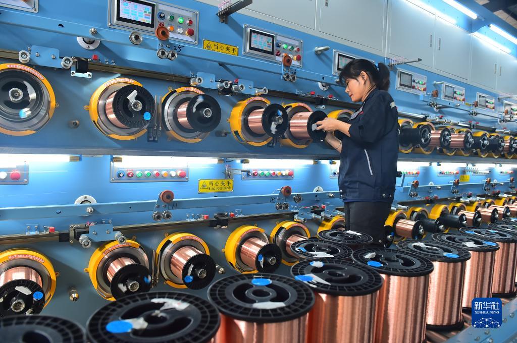 11月22日,江西鷹潭市鉦旺科技有限公司生產(chǎn)車(chē)間,技術(shù)工人在生產(chǎn)線(xiàn)上作業(yè)。