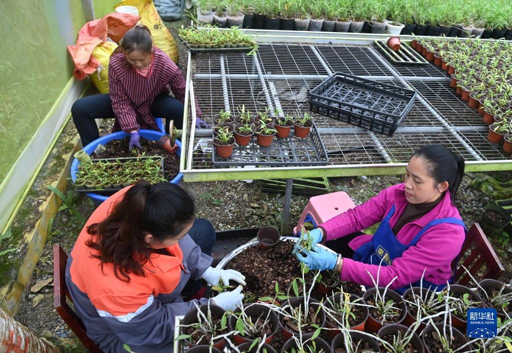 11月22日,在廣西雅長(cháng)蘭科植物國家級自然保護區,工人在栽種蘭科植物。