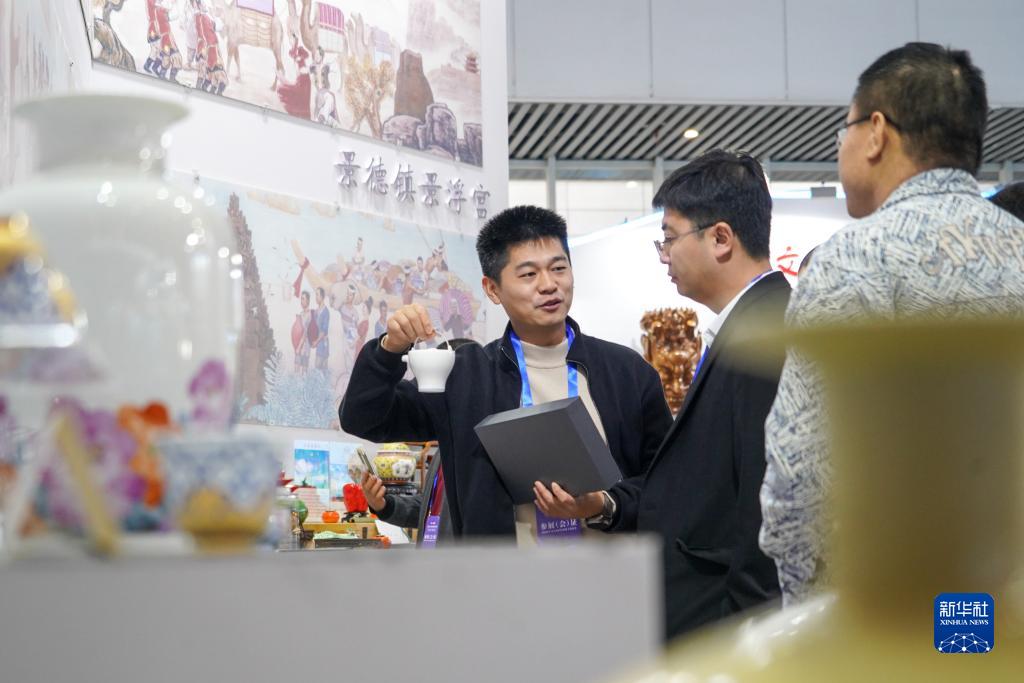 11月23日,在版博會(huì )展覽現場(chǎng),參展商在展示景德鎮瓷器。