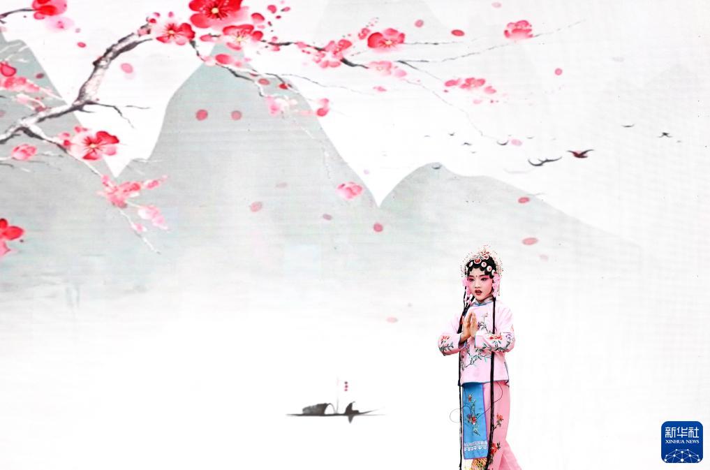 11月23日,西安市新城區西一路小學(xué)學(xué)生高雨萱表演秦腔《虎口緣》片段。