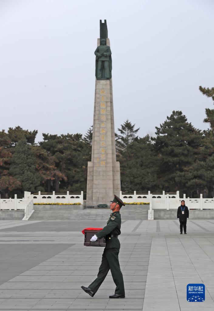 11月23日,志愿軍烈士遺骸抵達沈陽(yáng)抗美援朝烈士陵園。