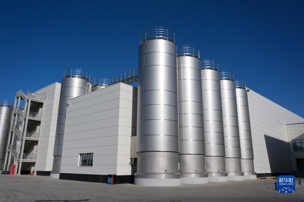 這是11月23日拍攝的呼和浩特市伊利現代智慧健康谷液態(tài)奶全球智造標桿基地的儲奶罐。