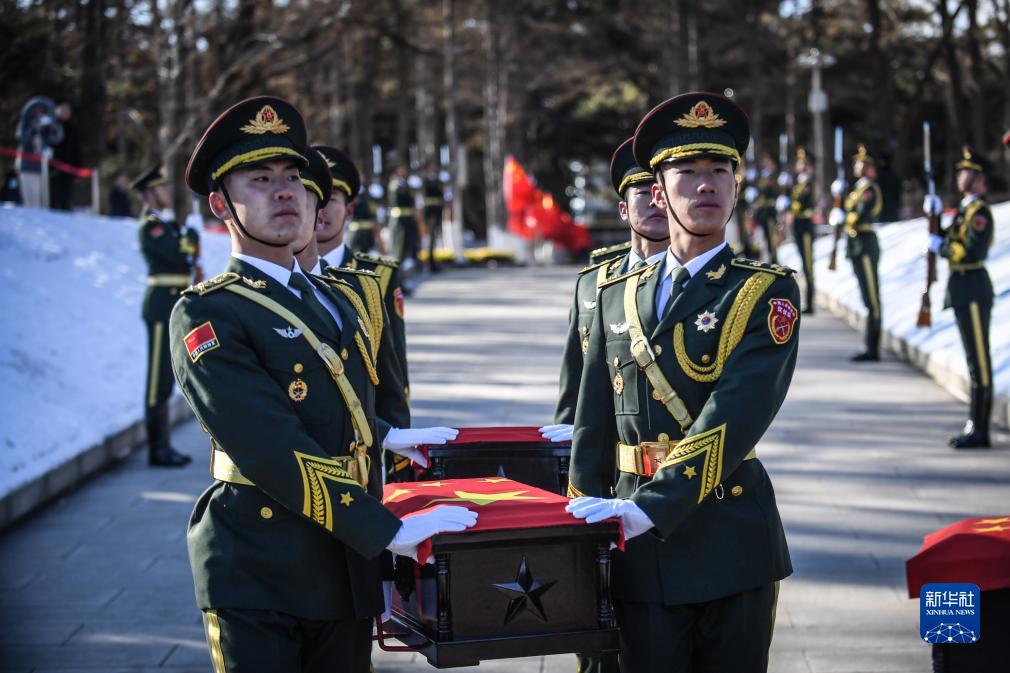 11月24日,第十批在韓中國人民志愿軍烈士遺骸安葬儀式在沈陽(yáng)抗美援朝烈士陵園舉行,25名志愿軍烈士英靈在抗美援朝戰爭勝利70周年之際,回到中華大地安息。