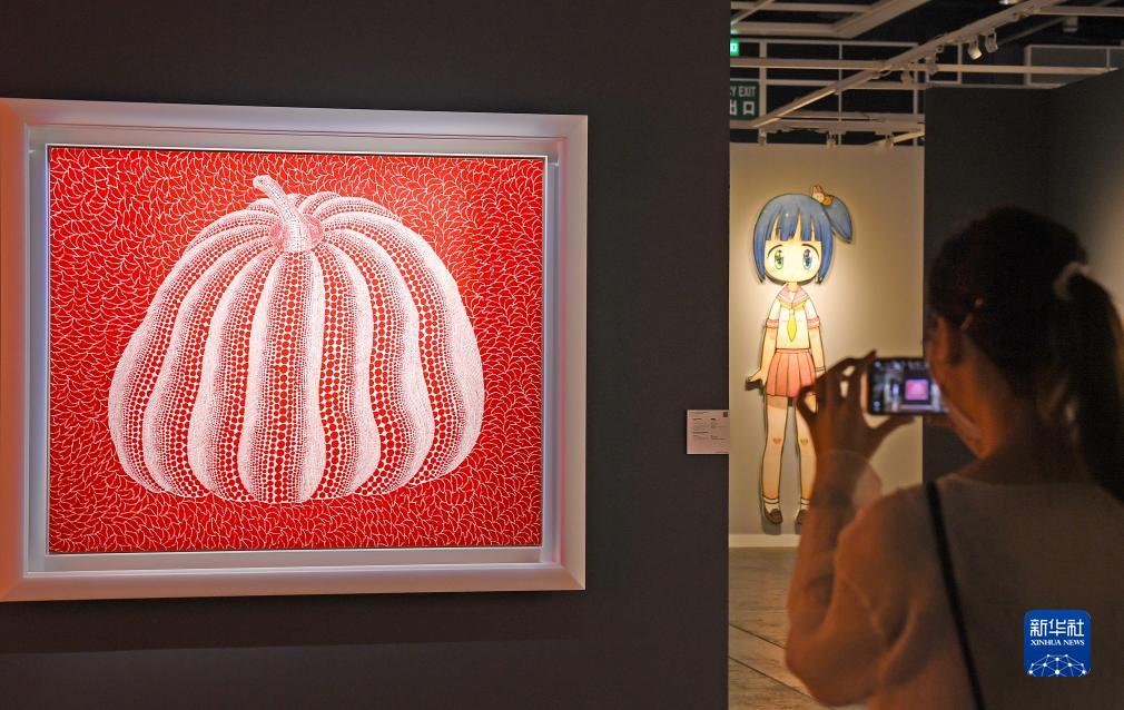 11月24日,在香港會(huì )議展覽中心,觀(guān)眾拍攝草間彌生作品《南瓜》。