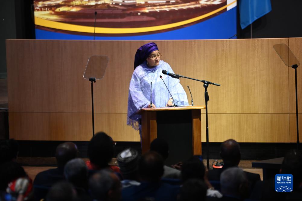 11月23日,聯(lián)合國常務(wù)副秘書(shū)長(cháng)阿明娜·穆罕默德在塞內加爾首都達喀爾舉行的駐西非聯(lián)合國機構辦公樓項目竣工儀式上發(fā)表講話(huà)。