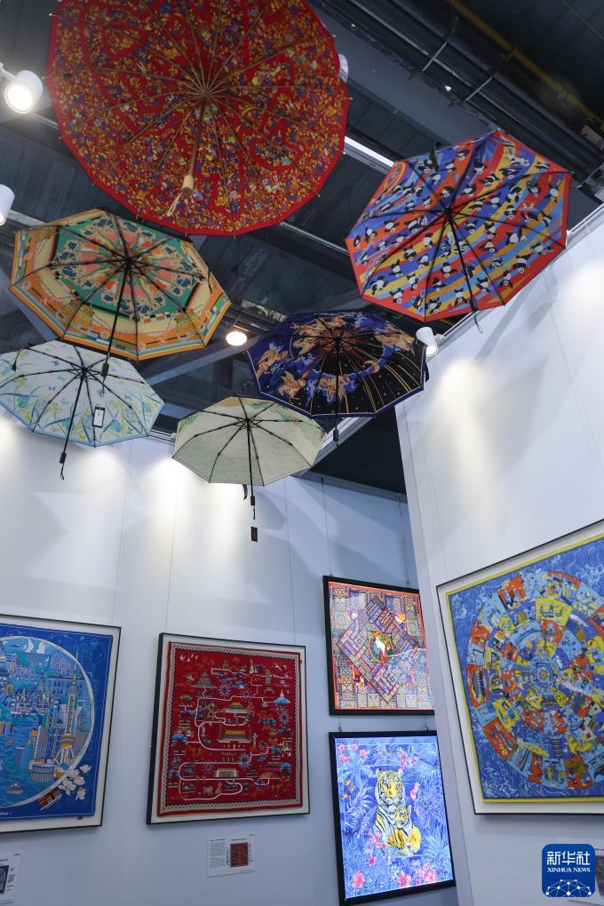 這是第二屆全球數字貿易博覽會(huì )的絲路電商館的絲綢主題展臺(11月24日攝)。