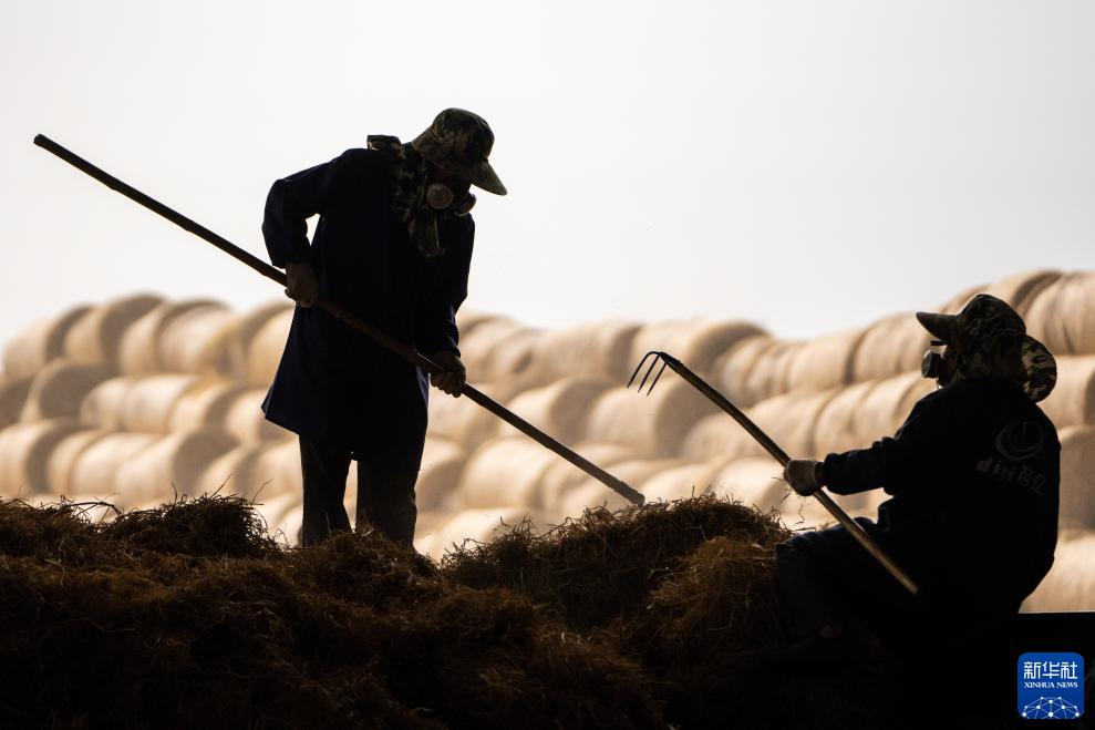 11月25日,在南縣武圣宮鎮沿河堤村,工人在整理秸稈。