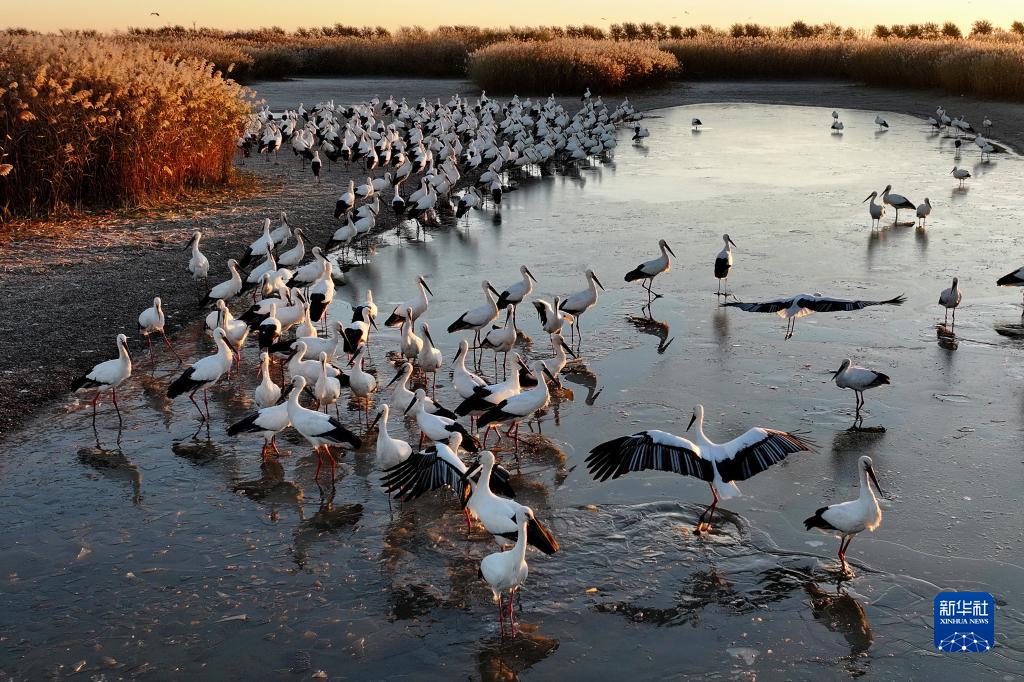 近日,大批東方白鸛、天鵝、大雁等候鳥(niǎo)飛抵河北省唐山市沿海濕地覓食、停留,形成一道靚麗的風(fēng)景。