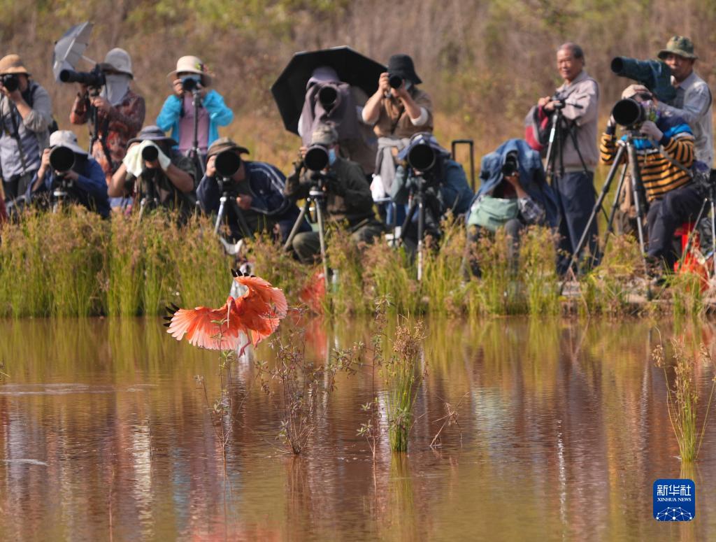 11月23日,觀(guān)鳥(niǎo)愛(ài)好者在拍攝美洲紅鹮。